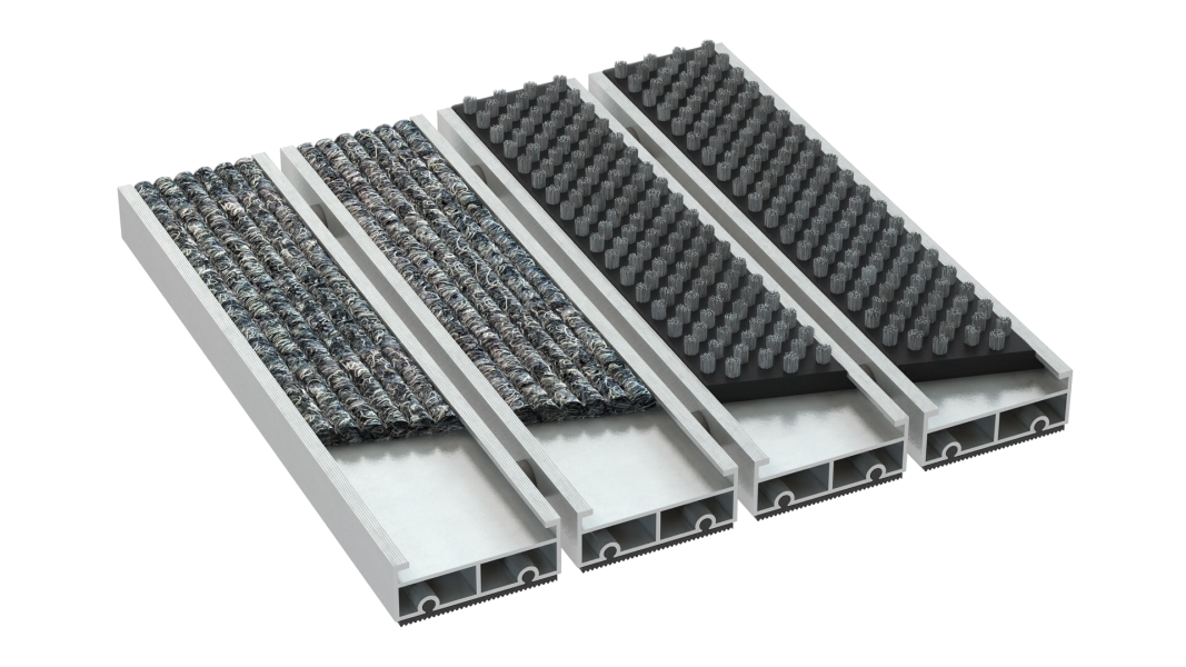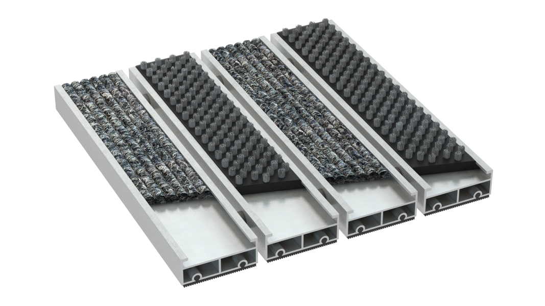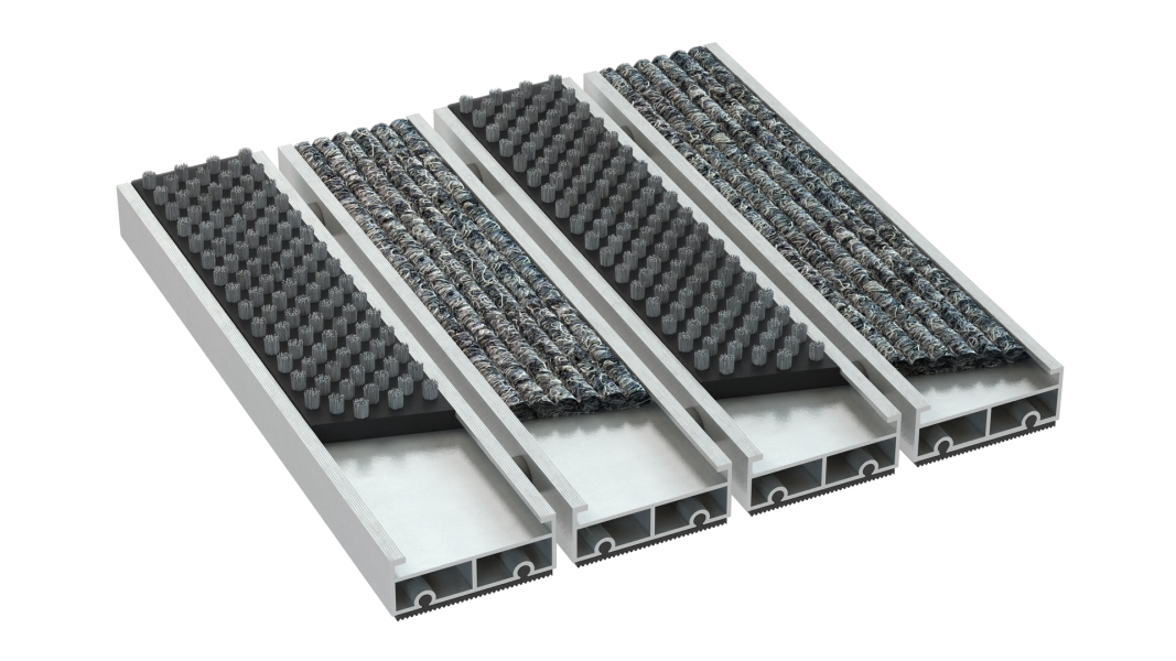Ekskluzywnie prezentująca się, ergonomiczna, trwała, oraz wydajna wycieraczka z wymiennym wkładem rypsowym i czyszczącym wkładem szczotkowym. Zaprojektowana do budynków mieszkalnych, placówek o średnim i wysokim natężeniu ruchu. Świetnie spełnia się w zatrzymywaniu drobnego, oraz grubszego rodzaju zanieczyszczeń. Połączenie dwóch rodzajów powierzchni czyszczących, (panele rypsu i szczotki o szerokości 50 mm każdy/układ naprzemienny, luz zgodnie z wytycznymi klienta) poprzez zwiększenie powierzchni czyszczenia, zapewnia jeszcze skuteczniejszą ochronę Twojego wnętrza przed zanieczyszczeniami. Wkład rypsowy dba o usuwanie niepożądanych zabrudzeń ciekłych (np. woda ), wkład szczotkowy zapewnia usuwanie z obuwia wszelkich drobniejszych i większych zanieczyszczeń (pyl uliczny, żwir, piasek, błoto, drobne kamienie itp.)